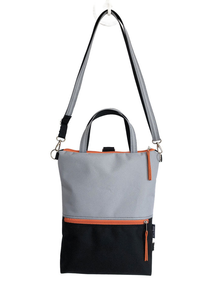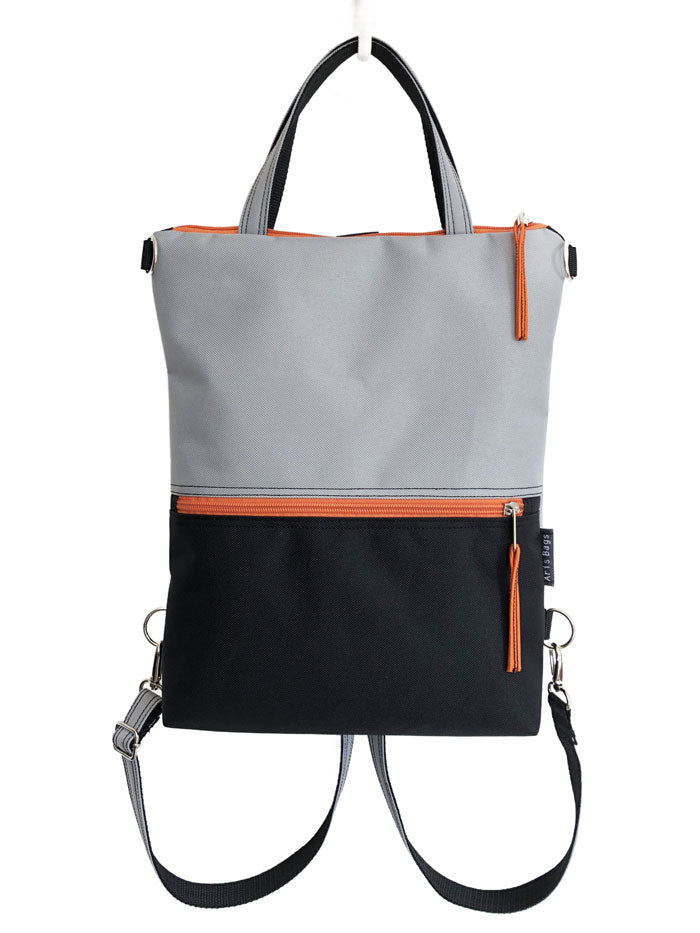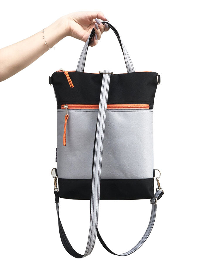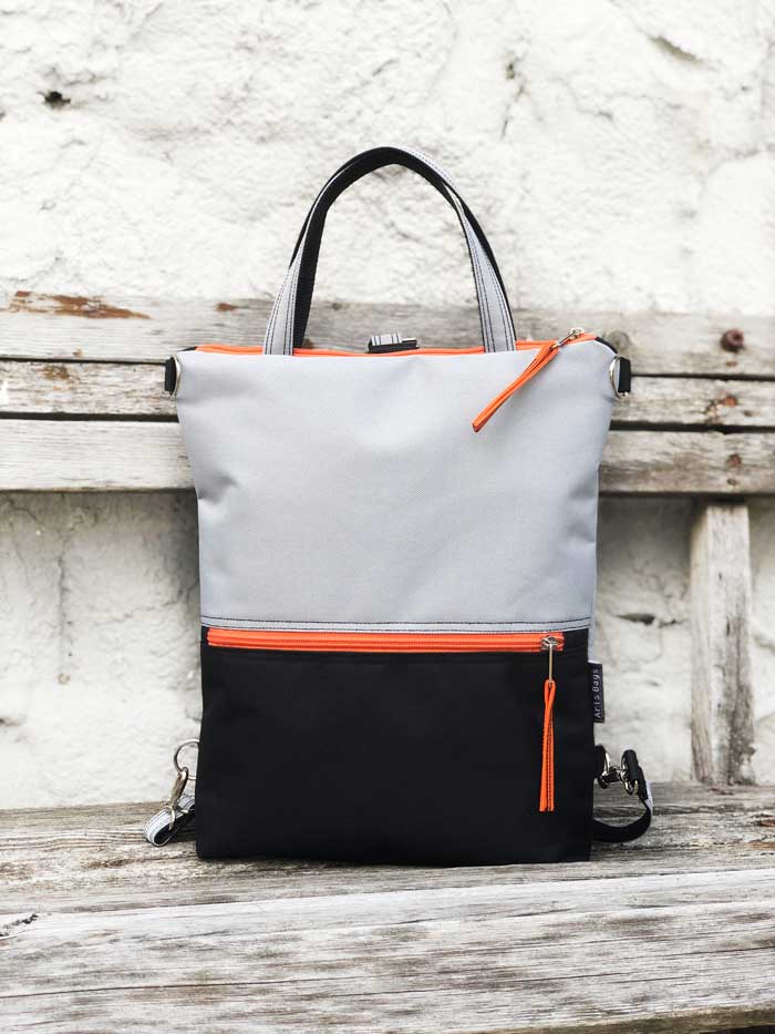 Minimalist vegan black and light/silvery grey Cordura waterproof bag.